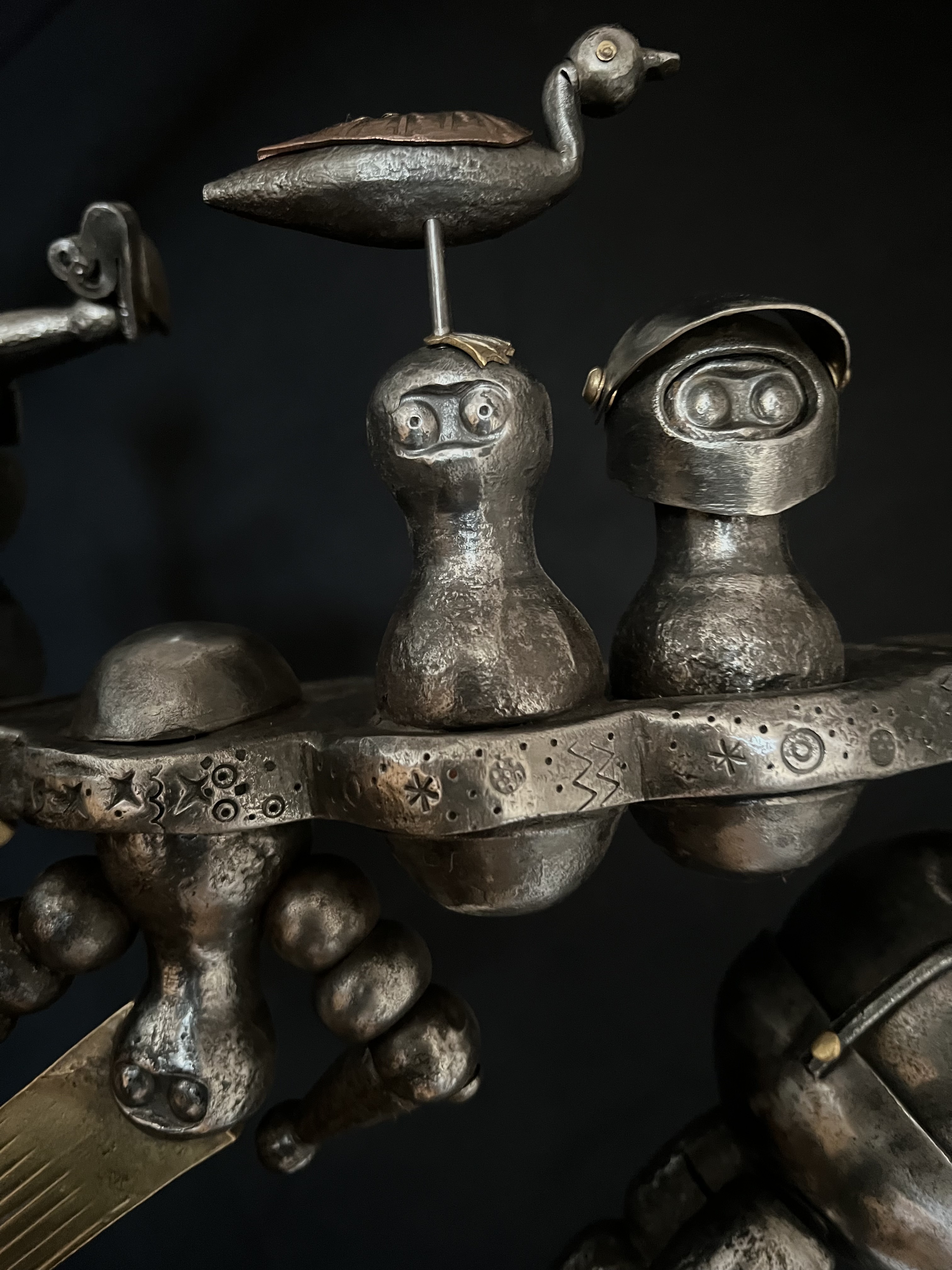 This sculpture is entitled "It's Goodnight From Him And It's Goodnight From Me".